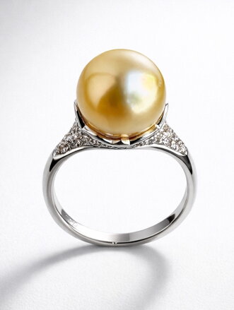 Dámsky elegantný prsteň ALO z bieleho 18 karátového zlata s prírodnou perlou a briliantami.